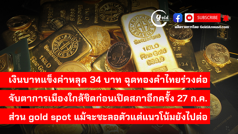 เงินบาทแข็งค่าหลุด 34 บาท ฉุดทองคำไทยร่วงต่อ จับตาการเมืองใกล้ชิดก่อนเปิดสภาอีกครั้ง 27 ก.ค. นี้ ส่วน gold spot แม้จะชะลอตัวลง แต่แนวโน้มยังไปอีก
