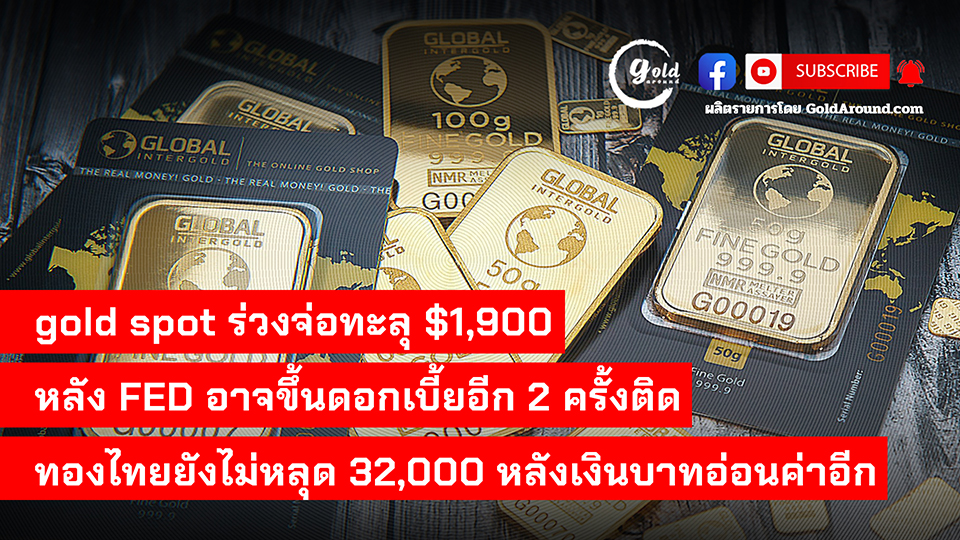 gold spot ร่วงอีก จ่อทะลุ $1,900 หลัง FED อาจขึ้นดอกเบี้ยอีก 2 ครั้งติด ทองไทยยังไม่หลุด 32,000 บาท บาทอ่อนค่าอุ้มไว้