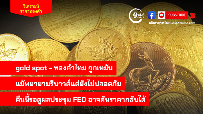 gold spot – ทองคำไทย ถูกเทยับ แม้พยายามรีบาวด์แต่ยังไม่ปลอดภัย คืนนี้รอดูผลประชุม FED อาจดันราคากลับได้