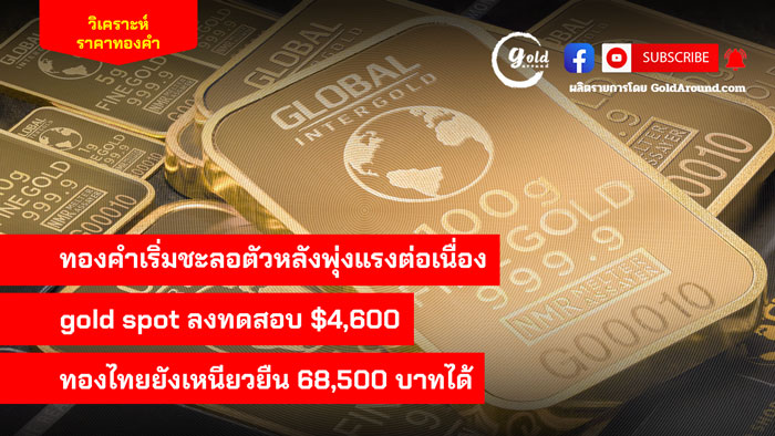 ทองคำเริ่มชะลอตัวหลังพุ่งแรงต่อเนื่อง gold spot ลงทดสอบ $4,600 ทองไทยยังเหนียวยืน 68,500 บาทได้