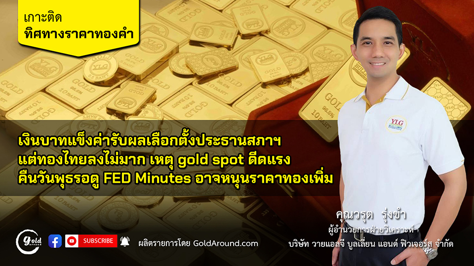 เงินบาทแข็งค่ารับผลเลือกตั้งประธานสภาฯ แต่ทองไทยลงไม่มาก เหตุ gold spot ดีดแรง คืนวันพุธรอดู FED Minutes อาจหนุนราคาทองเพิ่ม