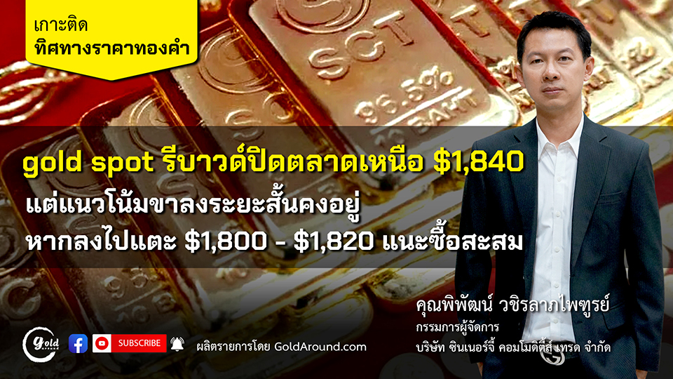 gold spot รีบาวด์ปิดตลาดเหนือ $1,840 แต่แนวโน้มขาลงระยะสั้นคงอยู่ หากลงไปแตะ $1,800-1,820 แนะซื้อสะสม
