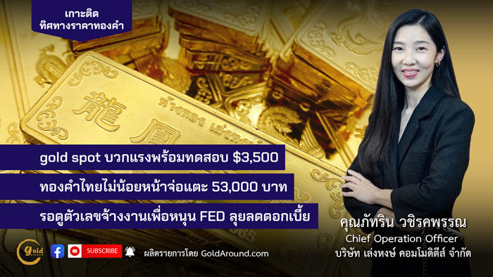 gold spot บวกแรงพร้อมทดสอบ $3,500 ทองคำไทยไม่น้อยหน้าจ่อแตะ 53,000 บาท รอดูตัวเลขจ้างงานเพื่อหนุน FED ลุยลด ดบ.