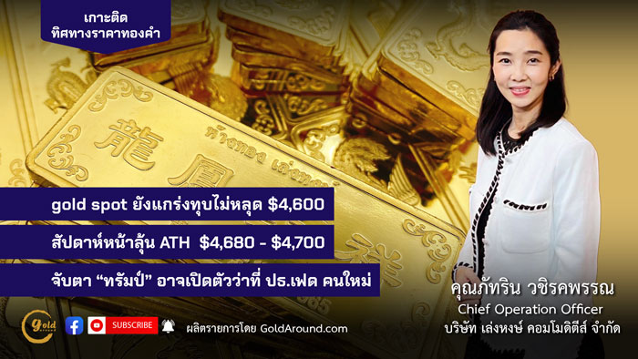 gold spot ยังแกร่งทุบไม่หลุด $4,600 สัปดาห์หน้าลุ้น ATH $4,680-4,700 จับตา “ทรัมป์” อาจเปิดตัวว่าที่ ปธ.เฟด คนใหม่