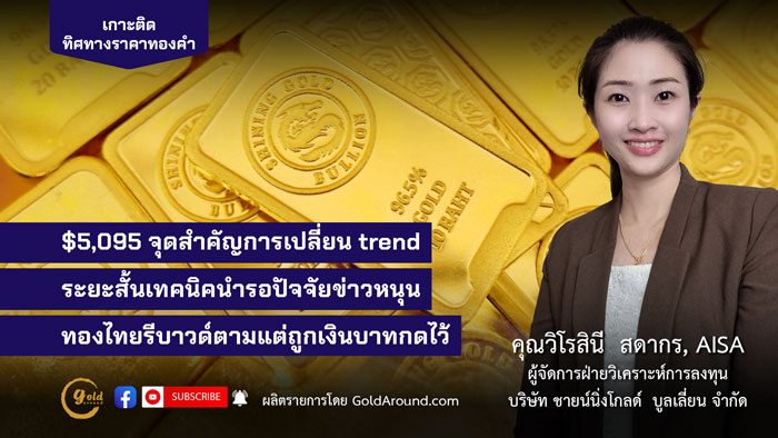 $5,095 จุดสำคัญการเปลี่ยน trend ระยะสั้นเทคนิคนำรอปัจจัยข่าวหนุน ทองไทยรีบาวด์ตามแต่ถูกเงินบาทกดไว้