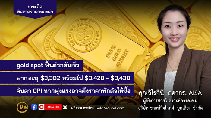 gold spot ฟื้นตัวกลับเร็ว หากทะลุ $3,382 พร้อมไป $3,420-30 จับตา CPI หากพุ่งแรงอาจดึงราคาพักตัวให้ซื้อ