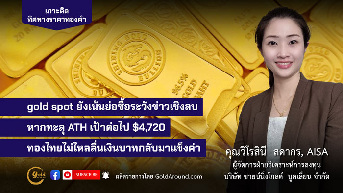 gold spot ยังเน้นย่อซื้อระวังข่าวเชิงลบ หากทะลุ ATH เป้าต่อไป $4,720 ทองไทยไม่ไหลลื่นเงินบาทกลับมาแข็งค่า