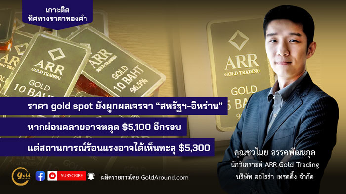 ราคา gold spot ยังผูกผลเจรจา” สหรัฐ-อิหร่าน” หากผ่อนคลายอาจหลุด $5,100 อีกรอบ แต่สถานการณ์ร้อนแรงอาจได้เห็นทะลุ $5,300