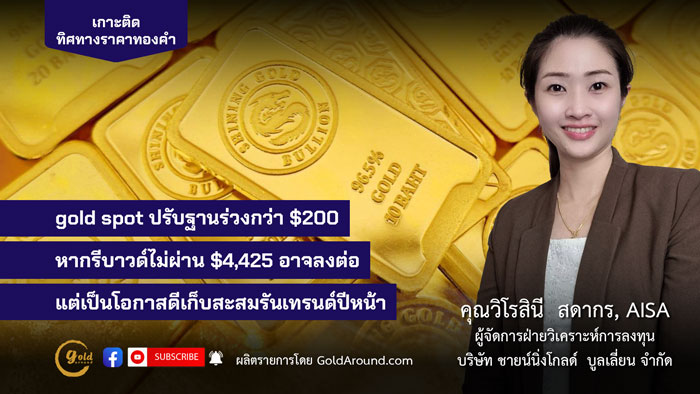 gold spot ปรับฐานร่วงกว่า $200 หากรีบาวด์ไม่ผ่าน $4,425 อาจลงต่อ แต่เป็นโอกาสดีเก็บสะสมรันเทรนด์ปีหน้า