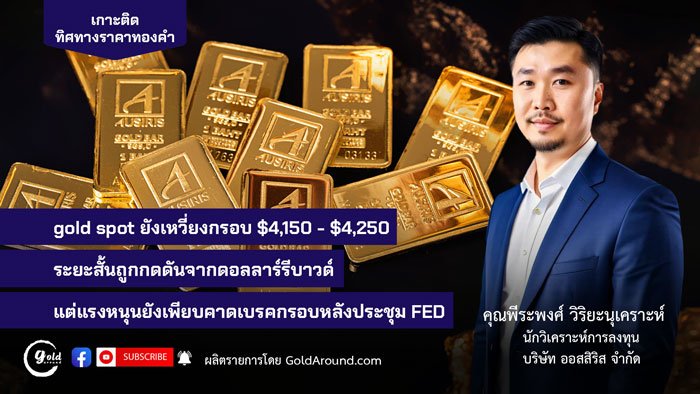 gold spot ยังเหวี่ยงกรอบ $4,150-4,250 ระยะสั้นถูกกดดันจากดอลลาร์รีบาวด์ แต่แรงหนุนยังเพียบคาดเบรคกรอบหลังประชุมFED