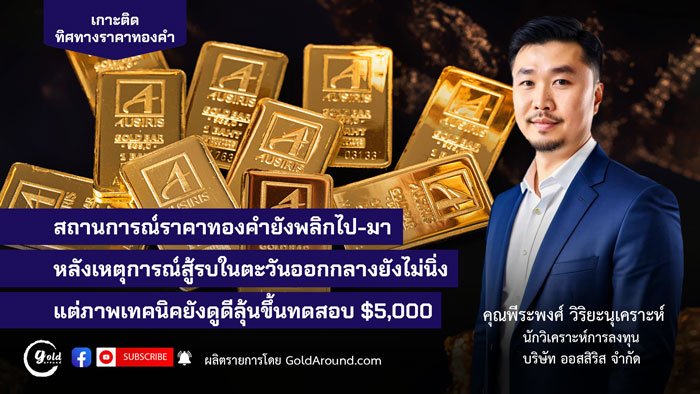 สถานการณ์ราคาทองคำยังพลิกไป-มา หลังเหตุการณ์สู้รบในตอ.กลางยังไม่นิ่ง แต่ภาพเทคนิคยังดูดีลุ้นขึ้นทดสอบ $5,000
