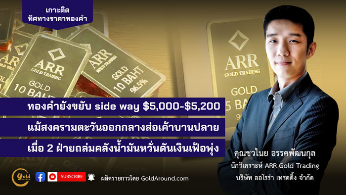 ทองคำยังขยับ side way $5,000-5,200 แม้สงคราม ตอ.กลางส่อเค้าบานปลาย เมื่อ 2 ฝ่ายถล่มคลังน้ำมันหวั่นดันเงินเฟ้อพุ่ง