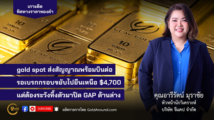 คุณอารีรัตน์ มุราชัย หัวหน้านักวิเคราะห์ บริษัท จีแคป จำกัด หรือ GCAP Gold กล่าวว่าราคาทองคำ gold spot ยังสร้างจุดสูงสุดเป็นประวัติการณ์ (All-Time High) ใหม่ที่ระดับ 4,690 ดอลลาร์
