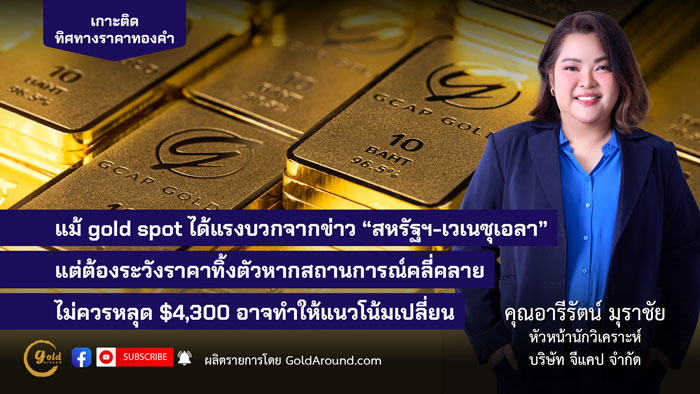 แม้ gold spot ได้แรงบวกจากข่าว “สหรัฐ-เวเนฯ” แต่ต้องระวังราคาทิ้งตัวหากสถานการณ์คลี่คลาย ไม่ควรหลุด $4,300 อาจทำให้แนวโน้มเปลี่ยน