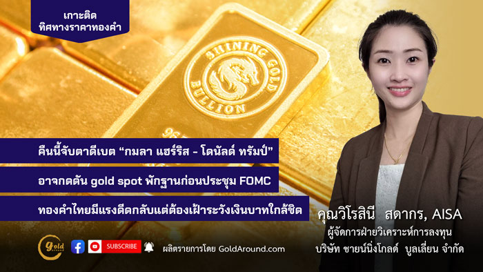 คืนนี้จับตาดีเบต “กมลา แฮร์ริส -โดนัลด์ ทรัมป์” อาจกดดัน gold spotพักฐานก่อนประชุม FOMC ทองคำไทยมีแรงดีดกลับแต่ต้องเฝ้าระวังเงินบาทใกล้ชิด