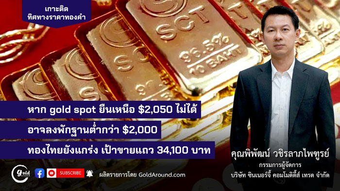 หากราคาทองคำ gold spot ยืนเหนือ $2,050 ไม่ได้ อาจลงพักฐานต่ำกว่า $2,000 ด้านทองคำไทยยังแกร่ง เป้าขายแถว 34,100 บาท