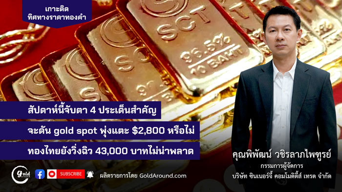 สัปดาห์นี้จับตา 4 ประเด็นสำคัญ จะดัน gold spot พุ่งแตะ $2,800 หรือไม่ ทองไทยยังวิ่งฉิว 43,000 บาทไม่น่าพลาด
