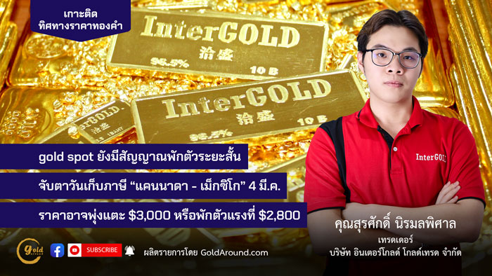 gold spot ยังมีสัญญาณพักตัวระยะสั้น จับตาวันเก็บภาษี “แคนนาดา-เม็กซิโก” 4 มี.ค. ราคาอาจพุ่งแตะ $3,000 หรือพักตัวแรงที่ $2,800
