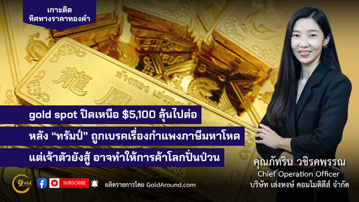 Gold Spot ปิดเหนือ $5,100 ลุ้นไปต่อ หลังทรัมป์ถูกเบรคเรื่องกำแพงภาษีมหาโหด แต่เจ้าตัวยังสู้ อาจทำให้การค้าโลกปั่นป่วน