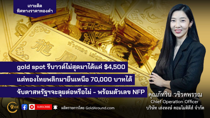 gold spot รีบาวด์ไม่สุดมาได้แค่ $4,500 แต่ทองไทยพลิกมายืนเหนือ 70,000 บาทได้ จับตาสหรัฐลุยต่อหรือไม่ -พร้อมรอดูตัวเลขNFP