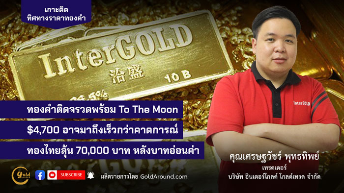 ทองคำ ติดจรวดพร้อม To The Moon $4,700 อาจมาถึงเร็วกว่าคาดการณ์ ทองไทยลุ้น 70,000 บาทหลังบาทอ่อนค่า