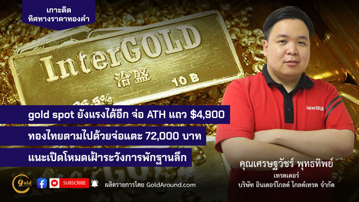 gold spot ยังแรงได้อีก จ่อ ATH แถว $4,900 ทองไทยตามไปด้วยจ่อแตะ 72,000 บาท แนะเปิดโหมดเฝ้าระวังการพักฐานลึก