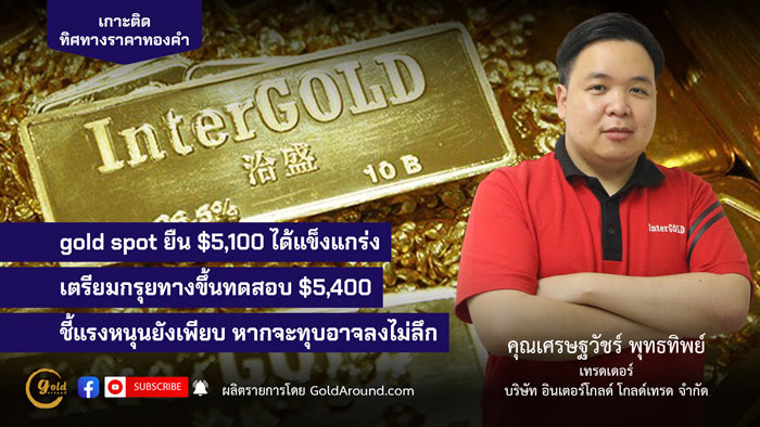 gold spot ยืน $5,100 ได้แข็งแกร่ง เตรียมกรุยทางขึ้นทดสอบ $5,400 ชี้แรงหนุนยังเพียบหากจะทุบอาจลงไม่ลึก
