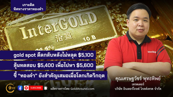 gold spot ดีดกลับหลังไม่หลุด $5,100 ลุ้นทดสอบ $5,400 เพื่อไปหา $5,600 ชี้“ทองคำ”ยังสำคัญเสมอเมื่อโลกเกิดวิกฤต