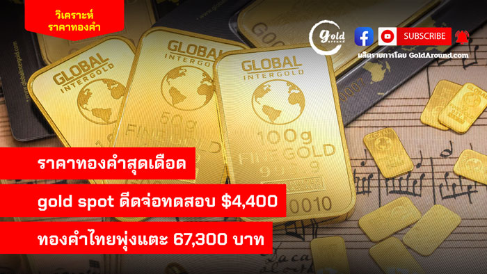 ราคาทองคำ สุดเดือด gold spot ดีดจ่อทดสอบ $4,400 ทองคำไทยพุ่งแตะ 67,300 บาท