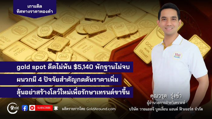 goldv spot ดีดไม่พ้น $5,140 พักฐานไม่จบ ผนวกมี 4 ปัจจัยสำคัญกดดันราคาเพิ่ม ลุ้นอย่าสร้างโลว์ใหม่เพื่อรักษาเทรนด์ขาขึ้น