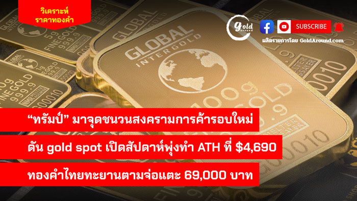 “ทรัมป์” กลับมาจุดชนวนสงครามการค้ารอบใหม่ ดัน gold spot เปิดสัปดาห์พุ่งทำ ATH ที่ $4,690 ทองคำไทยทะยานตามจ่อแตะ 69,000 บาท