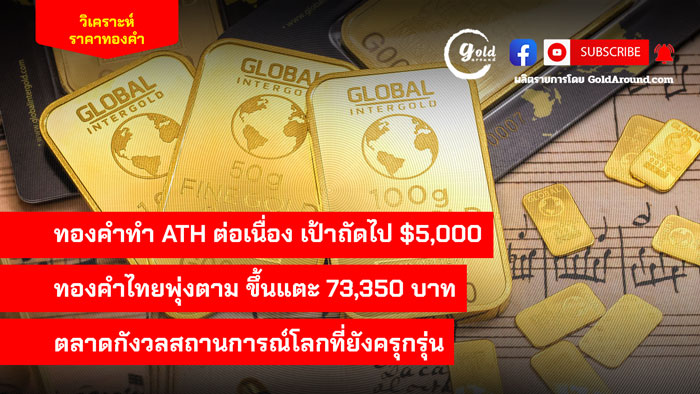 ทองคำทำ ATH ต่อเนื่อง เป้าถัดไป $5,000 ทองคำไทย พุ่งตามขึ้นแตะ 73,350 บาท ตลาดกังวลสถานการณ์โลกที่ยังครุกรุ่น