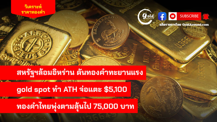 สหรัฐล้อมอิหร่านดันทองคำทะยานแรง gold spot ทำ ATH จ่อแตะ $5,100 ทองคำไทยพุ่งตามลุ้นไป 75,000 บาท