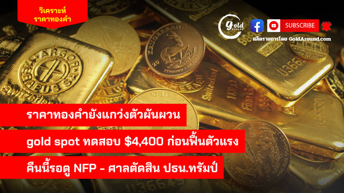 ราคาทองคำยังแกว่งตัวผันผวน gold spot ทดสอบ $4,400 ก่อนฟื้นตัวแรง คืนนี้รอดู NFP – ศาลตัดสิน ปธน.ทรัมป์