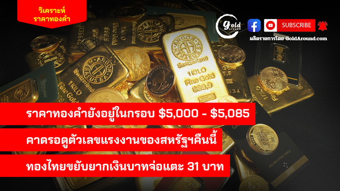 ราคาทองคำยังอยู่ในกรอบ $5,000-5,085 คาดรอดูตัวเลขแรงงานของสหรัฐคืนนี้ ทองไทยขยับยากเงินบาทจ่อแตะ 31 บาท