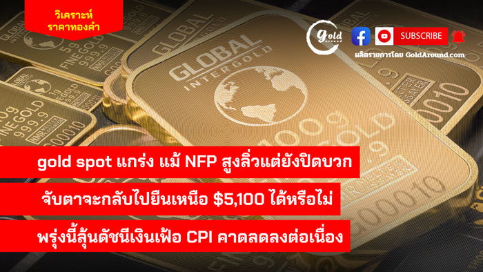 gold spot ยังแกร่ง แม้ NFP สูงลิ่วแต่ยังปิดบวก จับตาจะกลับไปยืนเหนือ $5,100 ได้หรือไม่ พรุ่งนี้ลุ้นดัชนีเงินเฟ้อ CPI คาดลดลงต่อเนื่อง