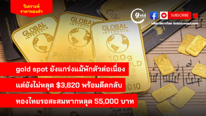 gold spot ยังแกร่งแม้พักตัวต่อเนื่อง แต่ยังไม่หลุด $3,620 พร้อมดีดกลับ ทองไทยรอสะสมหากหลุด 55,000 บาท