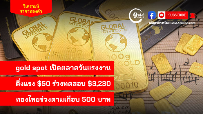 gold spot เปิดตลาดวันแรงงาน ดิ่งแรง $50 ร่วงทดสอบ $3,230 ด้านทองคำไทยร่วงตามเกือบ 500 บาท