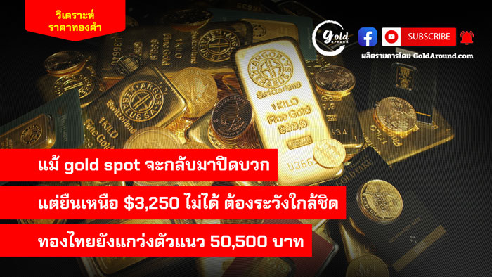 แม้ gold spot จะกลับมากปิดบวก แต่ยืนเหนือ $3,250 ไม่ได้ ต้องระวังใกล้ชิด ทองไทยยังแกว่งตัวแนว 50,500 บาท