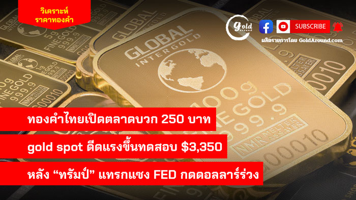 ทองคำไทยเปิดตลาดบวก 250 บาท gold spot ดีดแรงขึ้นทดสอบ $3,350 หลัง “ทรัมป์” แทรงแซง FED กดดอลลาร์ร่วง