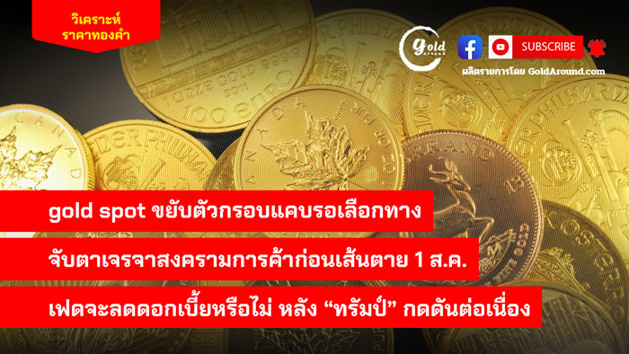 gold spot ขยับตัวกรอบแคบรอเลือกทาง จับตาเจรจาสงครามการค้าก่อนเส้นตาย 1 ส.ค. เฟดจะลดดบ.หรือไม่ หลัง “ทรัมป์” กดดันต่อเนื่อง