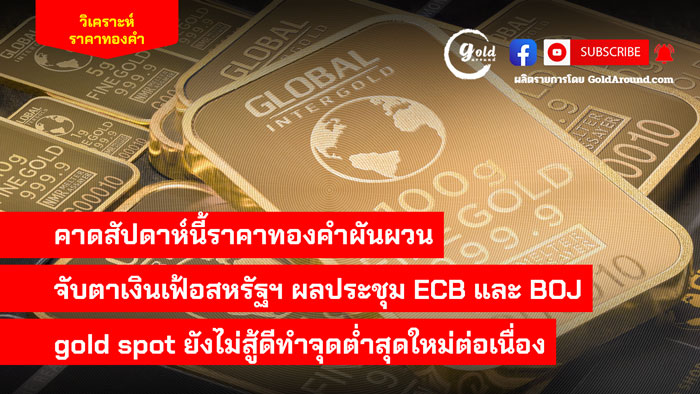 คาดสัปดาห์นี้ราคาทองคำผันผวน จับตาเงินเฟ้อสหรัฐฯ ผลประชุม ECB และ BOJ ด้านราคา gold spot ยังไม่สู้ดี ทำจุดต่ำสุดใหม่ต่อเนื่อง