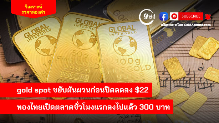 gold spot ขยับผันผวนก่อนปิดลดลง $22 ทองไทยเปิดตลาดชม.แรกลงไปแล้ว 300 บาท