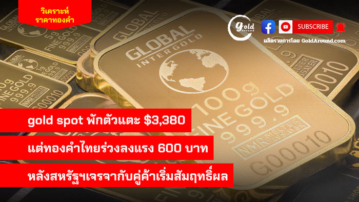 gold spot พักตัวแตะ $3,380 แต่ทองคำไทยร่วงลงแรง 600 บาท หลังสหรัฐเจรจากับคู่ค้าเริ่มสัมฤทธิ์ผล