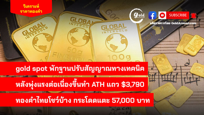 gold spot พักฐานปรับสัญญาณทางเทคนิค หลังพุ่งแรงต่อเนื่องขึ้นทำ ATH แถว $3,790 ทองคำไทยโชว์บ้างกระโดดแตะ 57,000 บาท