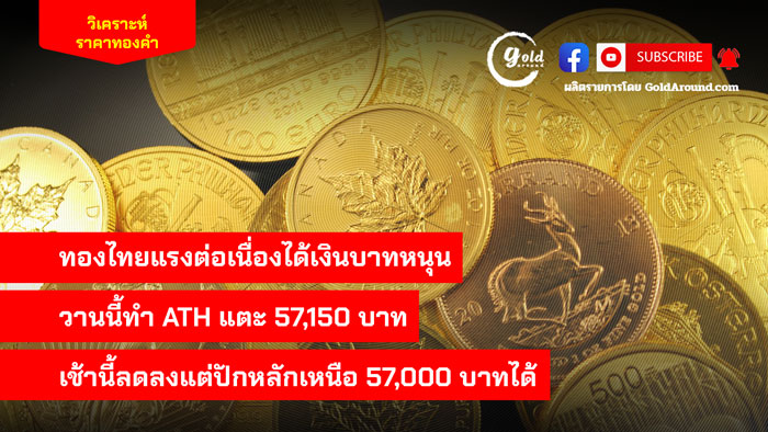 ทองไทยแรงต่อเนื่องได้เงินบาทหนุน วานนี้ทำ ATH แตะ 57,150 บาท เช้านี้ลดลงแต่ปักหลักเหนือ 57,000 บาทได้