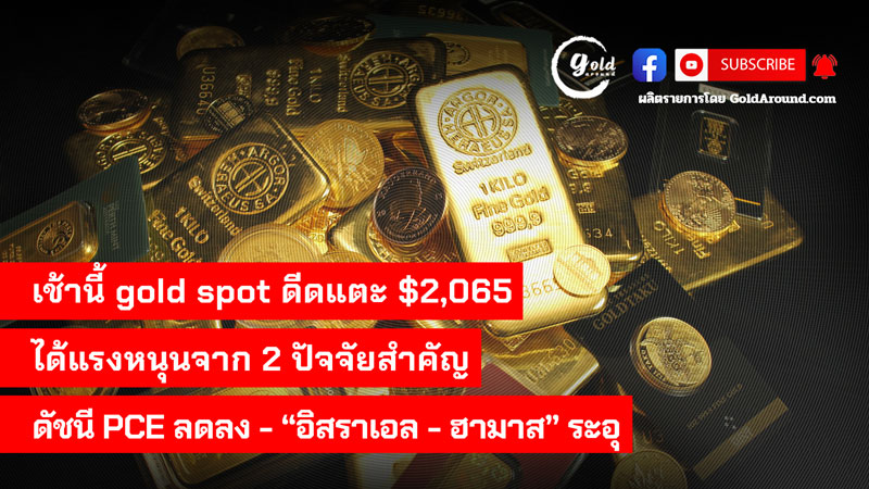 เช้านี้ gold spot ดีดแตะ $2,065 ได้แรงหนุนจาก 2 ปัจจัยสำคัญ ดัชนี PCE ลดลง และสถานการณ์ อิสราเอล – ฮามาส กลับมาระอุ