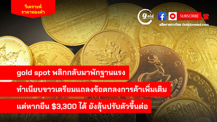 gold spot พลิกกลับมาพักฐานแรง ทำเนียบขาวเตรียมแถลงข้อตกลงการค้าเพิ่มเติม แต่หากยืน $3,300 ได้ ยังลุ้นปรับตัวขึ้นต่อ