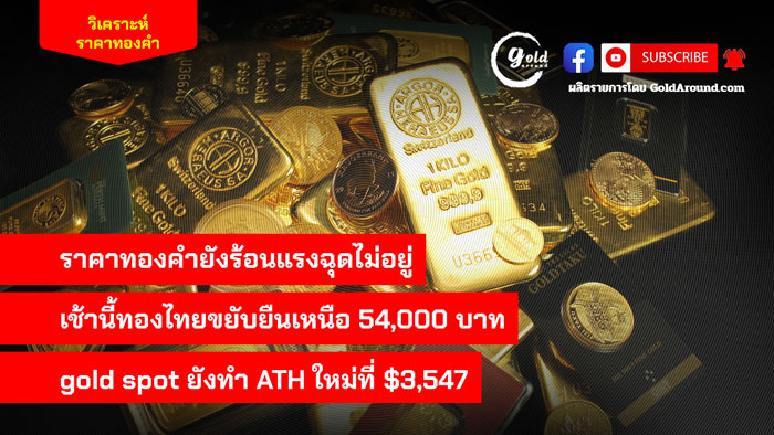 ราคาทองคำยังร้อนแรงฉุดไม่อยู่ เช้านี้ทองไทยขยับยืนเหนือ 54,000 บาท gold spot ยังทำ ATH ใหม่ที่ $3,547