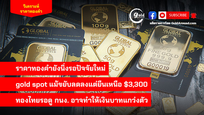 ราคาทองคำยังนิ่งรอปัจจัยใหม่ gold spot แม้ขยับลดลงแต่ยืนเหนือ $3,300 ทองไทยรอดู กนง. อาจทำให้เงินบาทแกว่งตัว